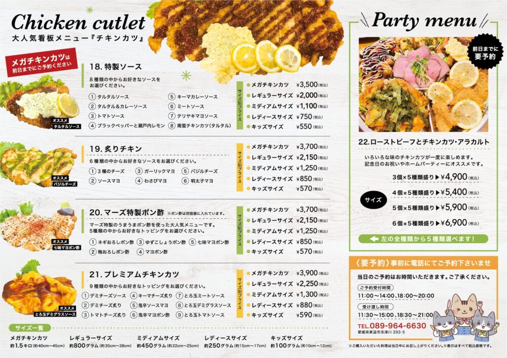 ・チキンカツ弁当、メガチキンカツ、特別弁当、オードブル等は要前日予約‼